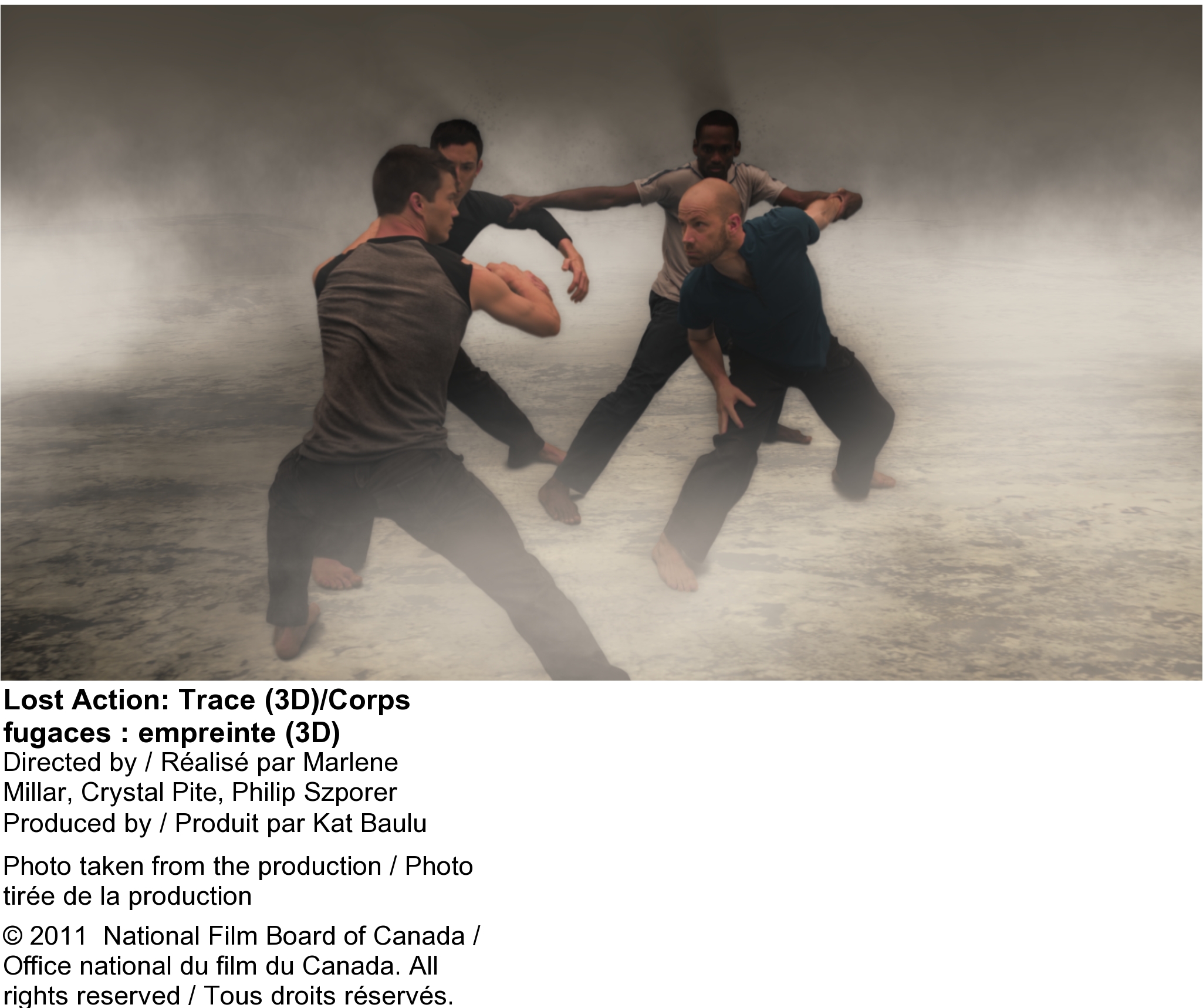 En voyant tout ce qui se fait de superflu en 3D (tous les Avatar de ce monde), on en vient à se demander si la 3D peut réellement apporter quelque chose au cinéma, mais surtout, à son propos.  Afin d’en comprendre l’intérêt, je me suis penché sur deux courts métrages parmi les plus novateurs réalisés en 2011 au Québec. Ora de Philippe Baylaucq (primé à Beverly Hills aux 3D Creative Arts Awards) et Corps fugaces : empreinte de Marlene Millar, Crystal Pite et Philip Szporer. Ce n’est sans doute pas une coïncidence si les deux films ont été produits par l’ONF. « Il y a très peu d’endroits dans le monde qui accepteraient un tel risque financier », fait remarquer le réalisateur Philippe Baylaucq. Effectivement, les difficultés liées à la distribution de courts métrages en rebutent plus d’un. Surtout lorsqu’il s’agit de deux films de danse contemporaine. L’apport artistique de ces deux œuvres est pourtant gigantesque, puisqu’elles ont toutes deux dû employer de nouvelles technologies pour voir le jour. Mais l’innovation s’accompagne de frais considérables.  « Un peu moins d’un million de dollars ont été investis en fonds publics dans Ora, incluant la recherche », avoue Philippe Baylaucq. Pour un film d’un peu plus de 15 minutes, c’est énorme. Toutefois, le Québec est le premier à tourner une œuvre avec des caméras 3D infrarouges, originellement produites pour l’armée américaine.