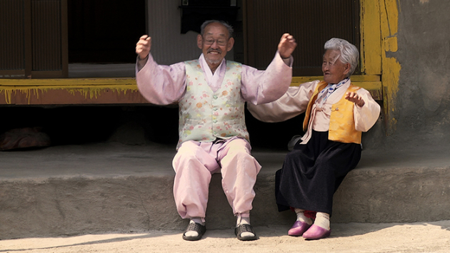 Kang Kye-yeo a rencontré son mari Byeong-man à 14 ans. Ils sont mariés depuis 75 ans. Le réalisateur les suit passivement dans leur quotidien. Même le spectateur le plus cynique est immédiatement séduit. La complicité du couple crève l’écran. On jalouse ces curieux personnages qui, malgré la difficulté de leur parcours, s’émerveillent devant tout, comme des grands enfants. Ils portent des habits traditionnels, toujours assortis, et s’endorment main dans la main. Ils s’offrent des fleurs et des chansons. Les tâches ménagères se transforment en jeux et le spectateur s’y prend : pendant les 30 premières minutes du film, il oublie que le portrait est destiné à s’assombrir.