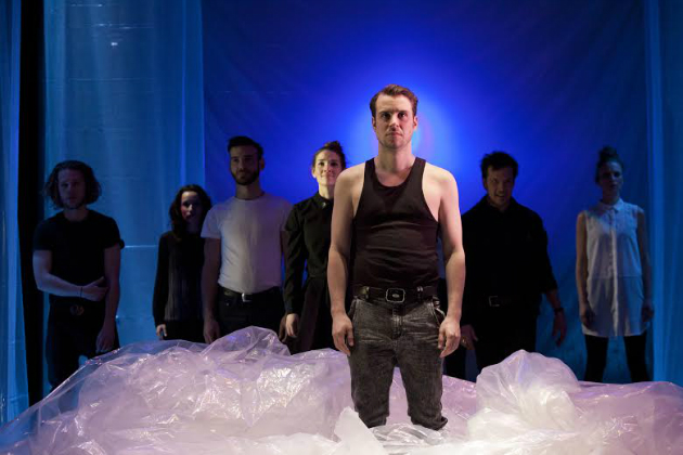 Disparaître ici, c’est d’abord la plume de Jocelyn Pelletier à bord de son véhicule de création, la compagnie tectoniK_, puis épaulé à la mise en scène par Édith Patenaude, co-fondatrice de la compagnie Les Écornifleuses. Les deux auteurs diplômés du Conservatoire d’Art dramatique de Québec font équipe pour nous proposer cette pièce contemporaine, où dix jeunes protagonistes mettent en mouvement le nombrilisme d’une génération sclérosée, d’une Amérique enlisée dans un consumérisme dépravé aux mécanismes pervertis par le vice.